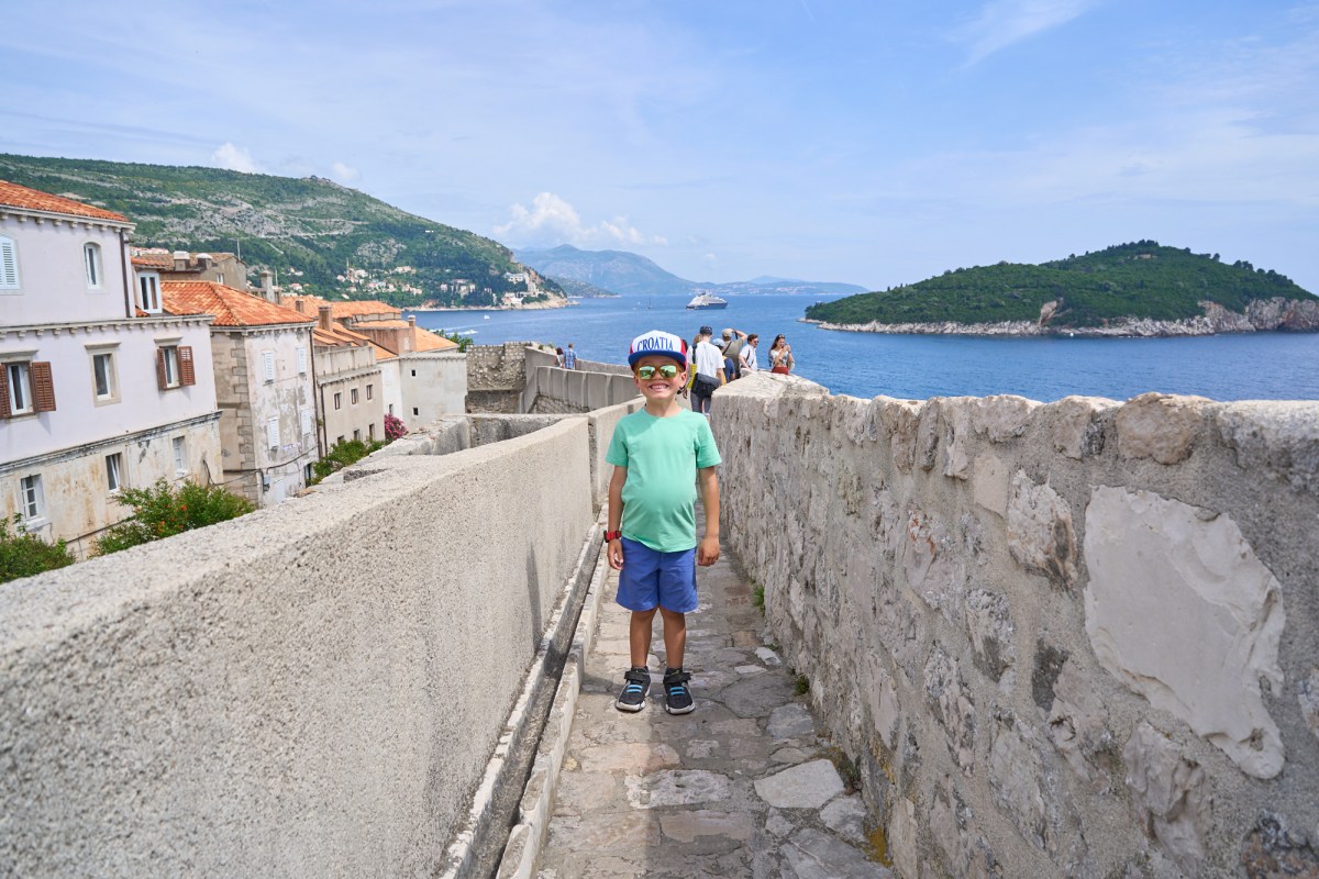 After arriving in Dubrovnik via the ferry from Hvar, we checked into our hotel and got settled. We stayed at Hotel Lero, which is a little outside of old town. The hotel was close to markets and restaurants, and was only a couple euros to ride to old town via UBER. It also had a fantastic breakfast buffet and a pool for my son. After dropping off our bags, we made our way to Stradun. Stradun is the limestone-paved main street of Dubrovnik, serving as the vibrant artery of the city. Lined with charming shops, bustling cafes, and centuries-old architecture, Stradun invites visitors to stroll through a captivating tapestry of both medieval and Baroque influences. We only spent a short while along Stradun before making our way up to the walls of old town.