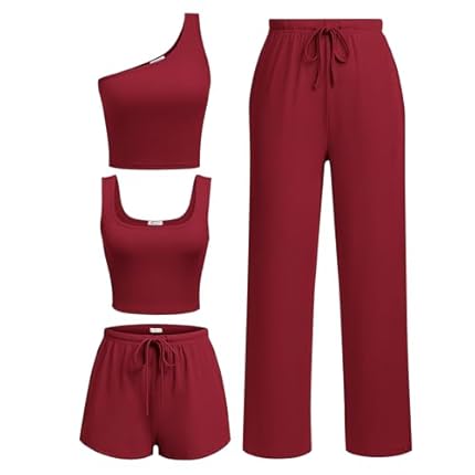 Ekouaer Womens 4 Piece Lounge Sets Ribbed Knit Crop Tank Top and Shorts Pants Casual Outfits
