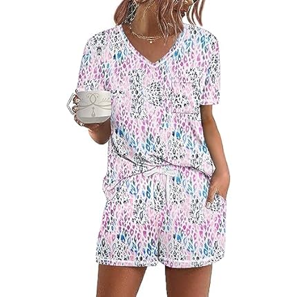Ekouaer Women’s Pajamas Sets Short Sleeve Lounge Sets Sleepwear Casual Two Piece Pjs With Pockets