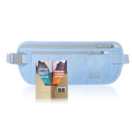 Peak Gear Travel Money Belt. Premium Quality Travel Wallet with RFID Blocking Fabric to Protect Credit Cards, Passports and Documents. Exclusive Theft Protection and 2 Recovery Tags | Blue