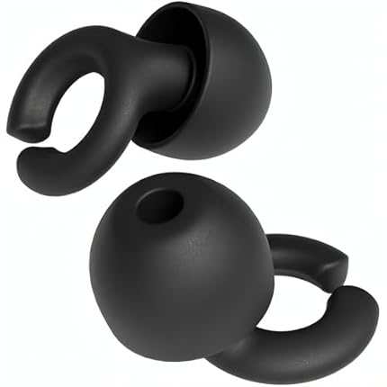 Hush Hoops Ear Plugs, Ultra-Soft Reusable Silicone Plugs with Horseshoe Shape for Comfort, Designed for Sleep and Sound Suppression, 17dB (NRR) Noise Reduction Rating, Black, 1 Pair with Travel Case