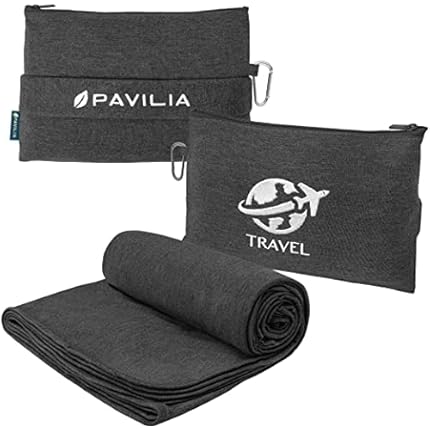 PAVILIA Travel Blanket Airplane Compact with Bag, Small Travel Pillow Blanket for Long Flights, Lightweight Plane Blanket with Luggage Strap, Camping Blanket for Traveler Essentials, Black, 65×40