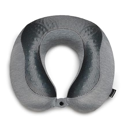 Brookstone Cool Touch Memory Foam Head and Neck Travel Pillow for Vacations, Airplanes, Trains, Buses, and Cars, Dark Grey