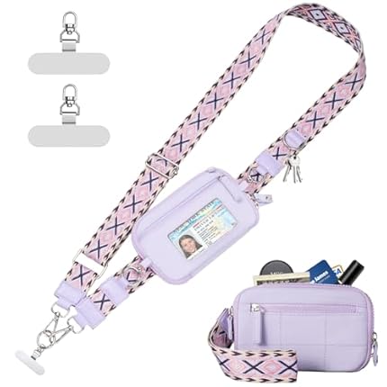 Clip and Go Strap for Phone with Wallet Crossbody Phone Lanyard with Anti-Theft Zipper Pouch Detachable Quilted Wrist Wallet with RFID and ID Window for Daily Travel.