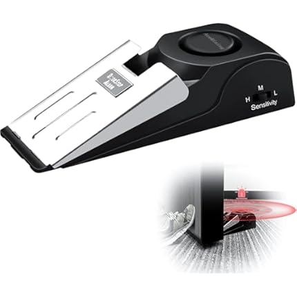Door Stop Alarm with 120 dB Siren – Portable Travel Door Stopper Alarm Wedge for Hotel, Apartment & Dorm Security – Battery-Operated, Black, 3-Pack