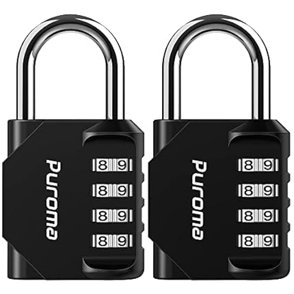Puroma 2 Pack Combination Lock for Locker 4 Digit Outdoor Waterproof Padlock for School, Gym, Sports, Fence, Toolbox, Gate, Case, Outdoor, Hasp Storage (Black)