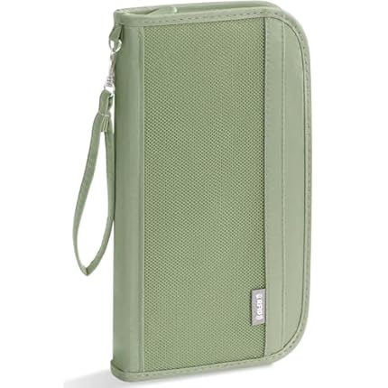 Passport Holder for Travel, Rfid Blocking Passport Wallet Travel Documents Organizer, Waterproof Family Passport Holder with Wrist Strap for Men & Women, Green