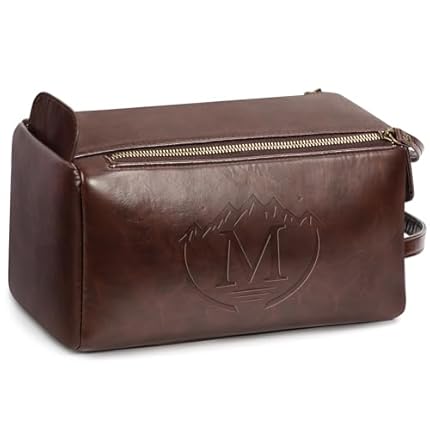 Personalized Toiletry Bag for Men,Initial Mens Toiletry Bags for Traveling,Men Travel Toiletries Bag,PU Leather Shaving Bag for Toiletries Accessories kit (M, Dark Brown)