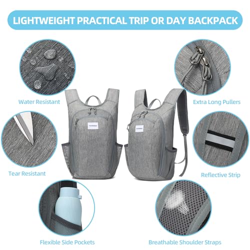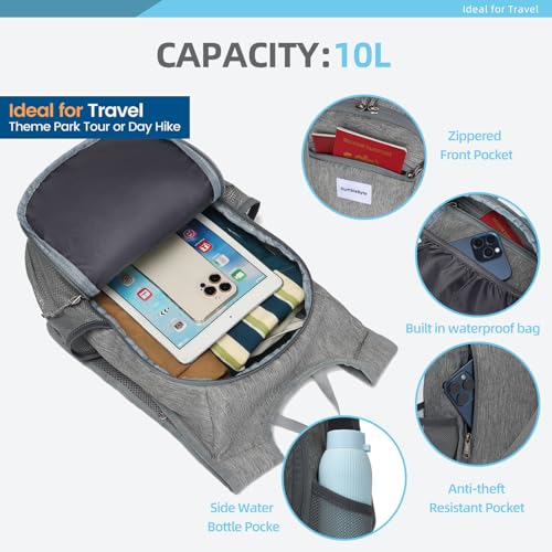 10L Lightweight Hiking Bag Small Daypack Hiking Backpack Foldable Outdoor Bag for Women Men(Gray)