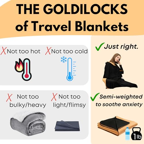 16-in-1 Compact Travel Blanket with Bag – Reversible, Ultra Soft Bamboo Airplane Blanket with Hidden Pocket – Packable for Flights & Travel Essentials (Semi-Weighted, Double Layer)
