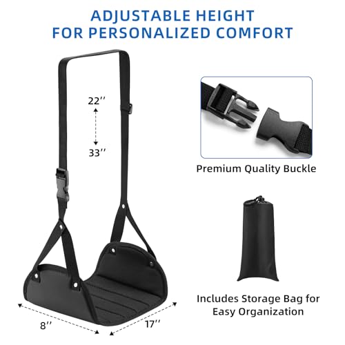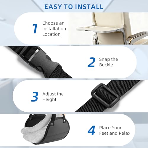 Adjustable Fit for Everyone:Designed with an extra-long adjustable strap, this leg hammock for airplane travel easily adapts to travelers of all heights. Simply secure the plane foot hammock to the tray in front of you, adjust the length, and rest your feet in the most comfortable position throughout the trip.