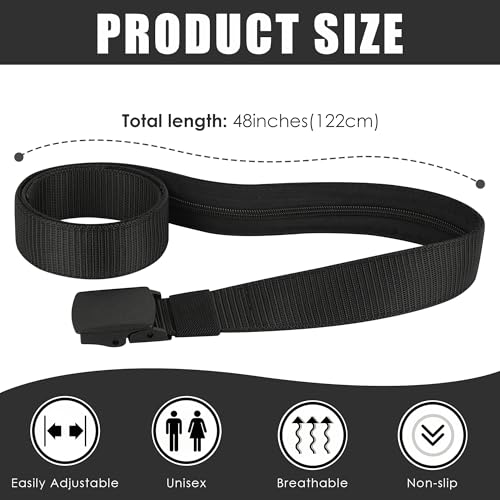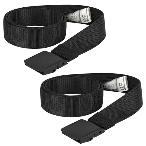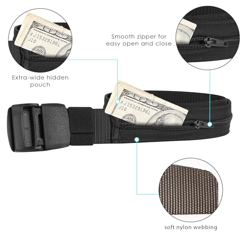 2 Pack Money Belts for Travel, Anti-Theft Hidden Waist Wallet with Zippered Security Pockets, Adjustable Nylon Belt for Men & Women Under Clothes (Black)​