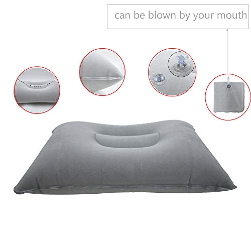 2 Pack Ultralight Inflatable Pillow Small Squared Flocked Fabric Air Pillow for Beach Hiking,Camping,Traveling,Napping,Desk Rest,Neck &Lumbar Support(Gray)