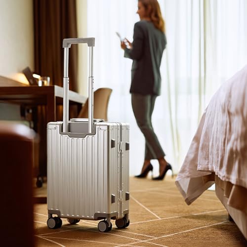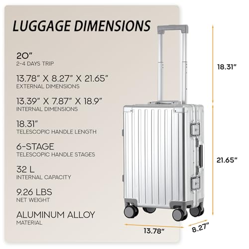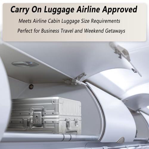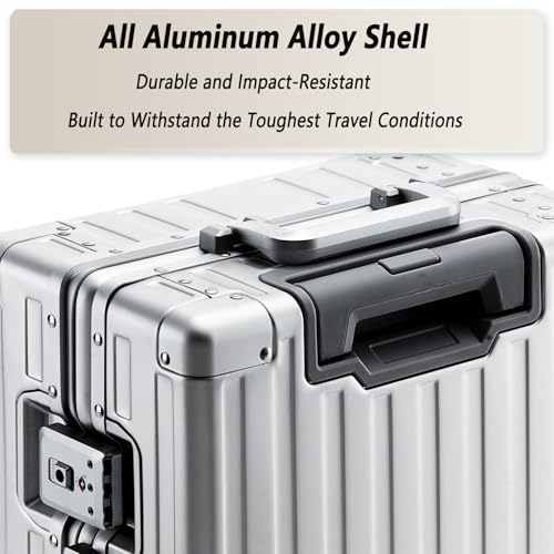 20 Inch All Aluminum Carry On Luggage 22x14x9 Airline Approved with Spinner Wheels,Hard Shell Zipperless Lightweight Small Suitcase with TSA Approved for Travel Business Women Men,Silver