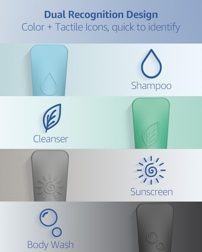 Tactile Icons – Identify by Touch Raised icons help you quickly recognize contents like shampoo or sunscreen — even in the shower or with eyes closed.