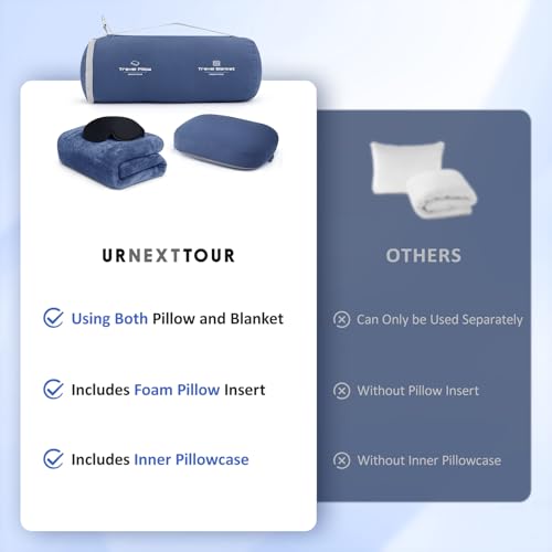 【All-in-One Trip Essentials】Complete set includes memory foam neck pillow, 50×65 Inch blanket, memory foam eye mask, and storage bag – the whole lot for comfortable Trip.