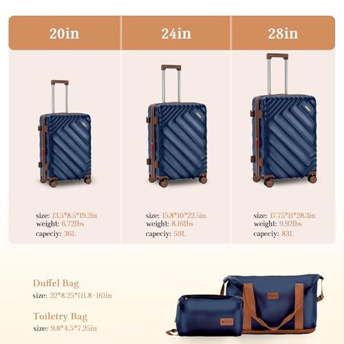 5 piece Luggage Set Expandable Suitcase 22x14x9 Airline Approved Carry on, ABS Hard Case Suitcases with Spinner Wheels, TSA Lock (Dark Blue)