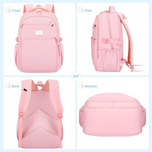[Good Quality]: This well designed and perfectly-sized kids backpack has all the features you want in a backpack: pretty color, sturdy fabric, quality zippers and padded straps. With the sturdy material and reinforced stitching, you can safely and reliably carry on everything. This a good choice for a lightweight college backpack with many pockets to keep your items. Age: over 6 years old.