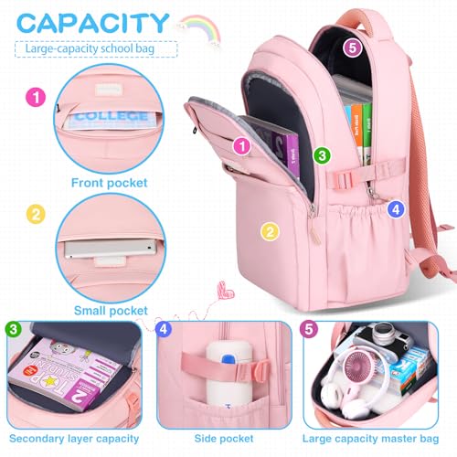 Aesthetic Backpack for School Cute Laptop Pink Backpack Teens Girls Travel Casaul Daypack Lightweight Book Bags