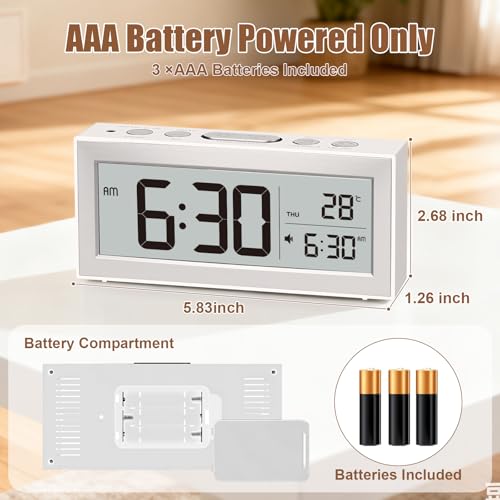 ALANAS Battery Operated Alarm Clock, Portable Digital Clock with Large Display, Snooze, Temperature & Date, Auto-Dim Night Light for Easy Reading, Ideal for Seniors, Kids, Bedroom, Travel, Nightstand