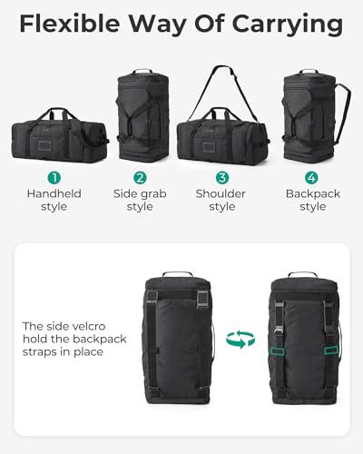 BAGSAMRT 60L Foldable Duffle Bag for Travel, Large Travel Duffel Bag for Men, 4 in 1 Travel Backpack, Carry on Weekender Bag, Black