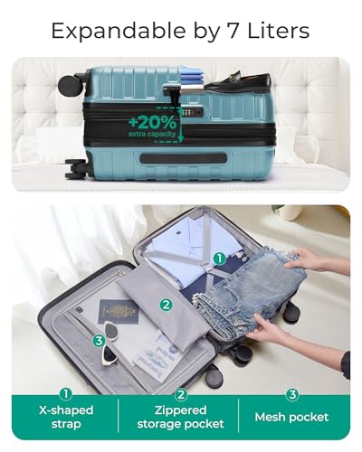 20% Upgraded Bigger Expandable Design: Pulling open the zipper can expand by 1.6 inches, adding an extra 7L of space, with a large capacity of 42L, helping you pack more items and keep your travel items organized. The checked luggage features the buckle compression system, keeping your clothes neatly arranged. The travel suitcase comes with a zippered mesh pocket for quick access to essentials, and a built-in small pocket for small items