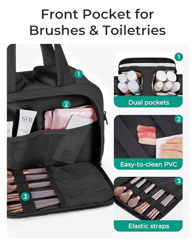 Easy Access and Keep Upright : Full opening and not piling up for simple access to items. Double side full open design of go back and forth bag helps to keep cosmetic bottles and toiletries can stand upright in the middle compartment. Keep away from leakage right through transit