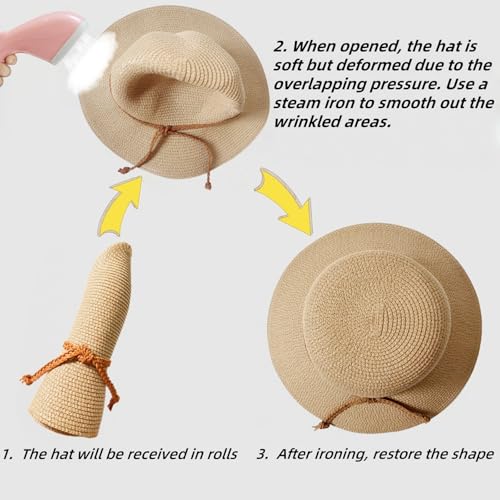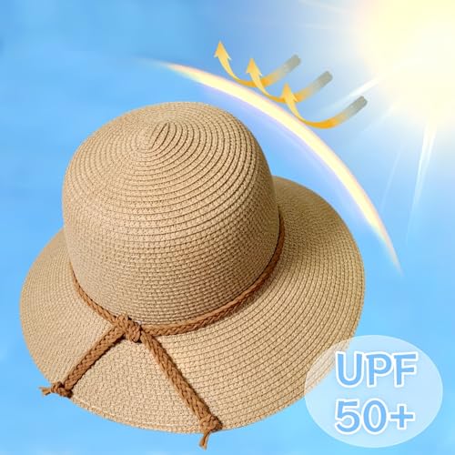 Beach Sun Straw Hats for Women, Summer Sun Protection Foldable Packable Wide Brim Hat