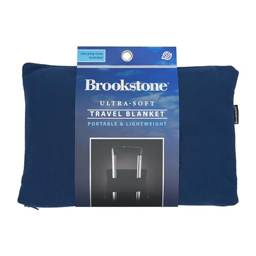 Brookstone Travel Blanket – 2-in-1 Lightweight Fleece Soft Throw Airplane Blanket with Carrying Pouch Travel Essentials, Size One Size, Blue