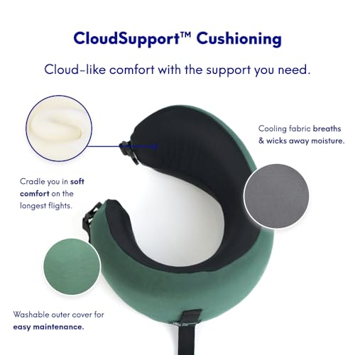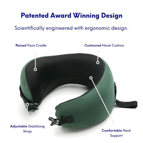 C CUSHION LAB Travel Pillow, Award-Winning Patented Ergonomic Design for Chin & Neck Support Memory Foam Neck Pillow, Compact Airplane Pillow for Traveling, Flight, Car (Hunter Green, Medium)