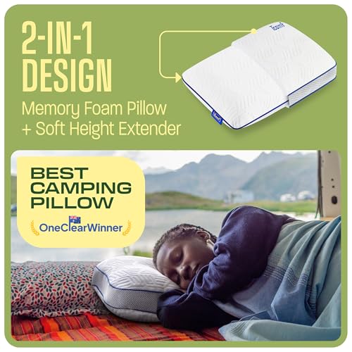 Camping Pillow: Dual Cover, Memory Foam Travel Pillow, Medium Firm Camp Pillow, Camping Pillows for Sleeping, 5 Layers for Support, Small Travel Pillow,Small Portable Pillow 10×16 Inches (White)