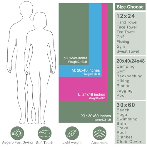 【Great Sizes & Options】Gym towel set have three size to make a choice. S: (40″x20″+24″x12″)is suitable as a hand towel, perfect for gym and yoga classes as a result of its lightweight, soft, and quick sweat absorption.,M:(24″x48″+24″*x12″)is perfect for camping and designed for Trip. The largest towel,L:(30″x60″+12″x24″)is a perfect choice for a beach blanket or a yoga mat, Oversized to cover the whole body.