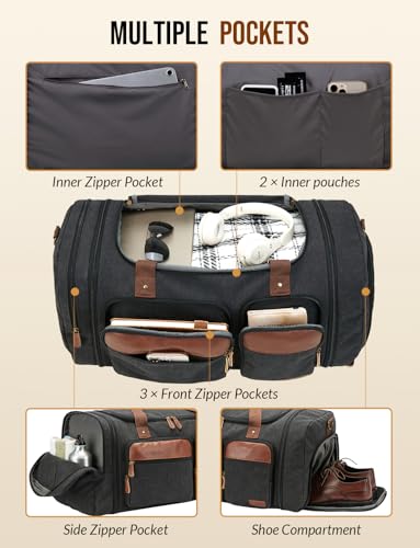 Canvas Duffle Bag for Travel 50L Expandable Travel Duffel Bags for Men Women Overnight Weekend Gym Bag with Shoes Compartment – Dark Grey