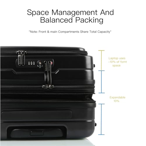 Convenient Front Pocket Design: This carry-on luggage with laptop compartment features a 15.6″ laptop sleeve, mesh organizer, and document pocket—all located in the front pocket, there is no need to open the main compartment during security screening. make your journey safe and convenient. (When the front pocket is full, the main compartment space will be smaller)