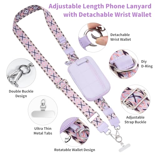 Clip and Go Strap for Phone with Wallet Crossbody Phone Lanyard with Anti-Theft Zipper Pouch Detachable Quilted Wrist Wallet with RFID and ID Window for Daily Travel.