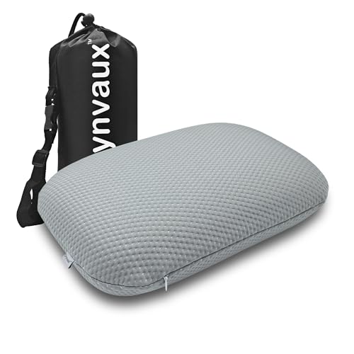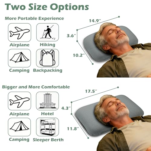 Cooling Memory Foam Travel Pillow – Upgraded Triple-Fiber Cooling Fabric Camping Pillow, Adjustable Storage Bag (Buckles), Compact for Business Travel, Camping, Hiking etc., Quarry Grey
