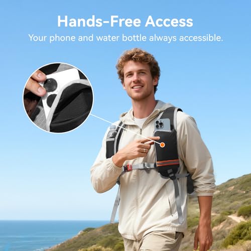 Quick-Grab Convenience, Total Freedom: The CROSSGEAR hiking backpack features quick-access shoulder strap pockets, keeping your phone and water bottle within easy reach. Fits 1.06″ diameter bottle and 6.8″ phone—stay hydrated and capture moments on the go without stopping.