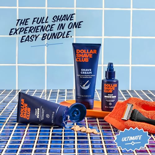 Dollar Shave Club | Ultimate Set | 4 Extra Close Refill Cartridges, 1 Handle, 1 Prep Scrub 3 ounce, 1 Shave Cream 6 ounce, 1 Post Shave Dew 3.4 ounce
