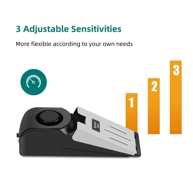 Two-in-One : Used as a door alarm and in addition a door stopper, Its high damping rubber bearing can save you the door sliding and scare off the strangers if they tries to wreck in.