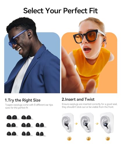 Cloud-like Sleep Comfort & Fit: Made with ultra-soft silicone, earplugs for sleep reduces pressure at the ear, ensuring comfort – whether you’re tossing, or side-sleeping. Innovative 3D ergonomic design molds to your ear canal, sleeping ear plugs providing a snug, safe fit—ideal for side sleepers, active concert-goers, or travelers. With 8 pair eartips (2 pairs XS, S, M, L), noise cancelling ear plugs fit 95% of ear shapes. Enjoy all-day comfort with our ear plugs for sleeping noise cancelling