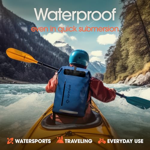Earth Pak Waterproof Backpack – Heavy Duty Hiking Backpack – Roll-Top Closure Bag – Cushioned Dry Bag Waterproof Phone Case