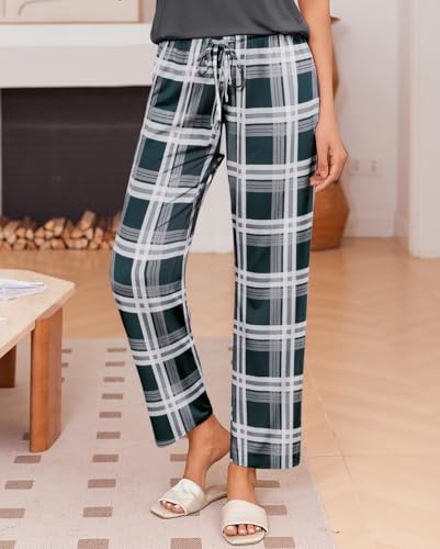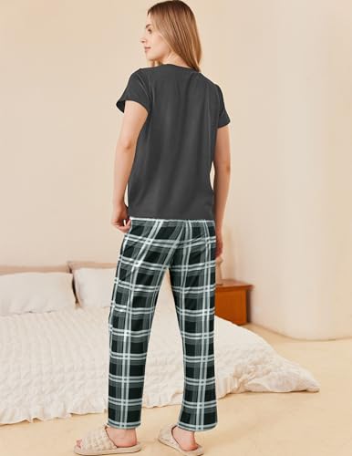 Ekouaer Pajama Sets for Women Round Neck Pjs Short Sleeve Sleepwear with Long Pants Loose Lounge Sets