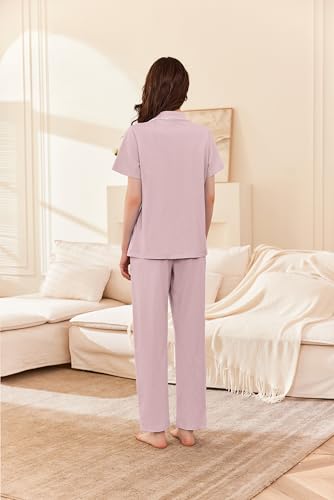 Ekouaer Women’s 100% Cotton Pajamas Set Short Sleeve Button Down Pjs 2 Piece Soft Sleepwear with Long Pants Lounge Set