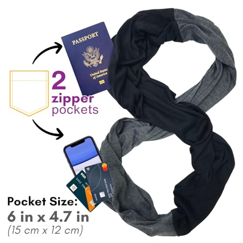 elzama Travel Scarf 2 Hidden Zipper Pocket for Women, Infinity Loop Scarf with Double Zip Pockets, Neck Wrap, Dual Color