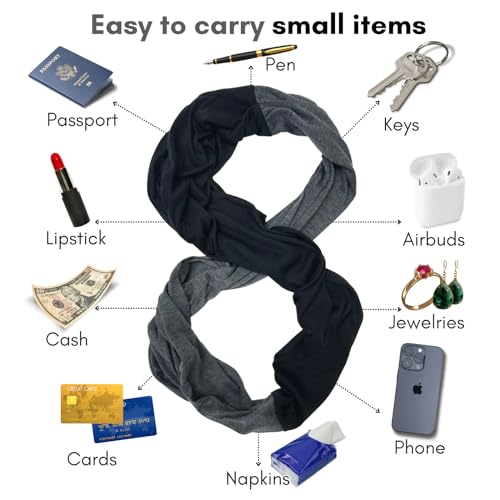 Introducing without equal Commute companion – Elzama Commute Infinity Scarf with Hidden Pocket. This stylish and versatile black infinity scarf for women is designed to be your go-to for each and every adventure. Made with lightweight materials in a range of beautiful dual colors including red, grey, green, and more, this infinity scarf includes a hidden pocket for safe storage of your belongings. Soft to the touch and perfect fit for long or double wrap wear, you’ll stay cozy and comfy to wear in all seasons. With a zipper pocket for extra security, you’ll depend on this convertible infiniti scarf with pocket each and every time you hit the road. Get in a position to your next journey with Elzama Wrap Shawl Scarf with Pockets for hands and valuables.