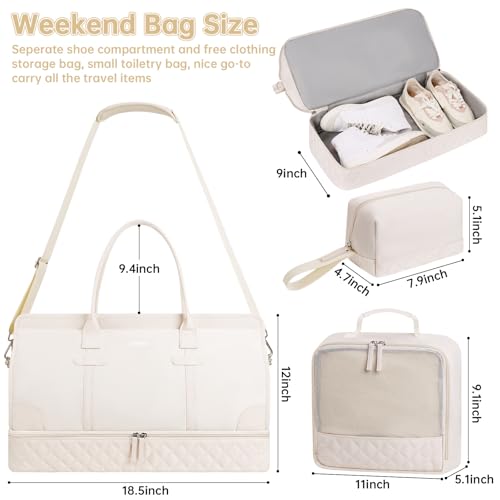 Upgraded 3 Pcs Set: The Trip bag comes with 1 weekender bags for women that can assist you organize and maximize your space when traveling. 1 clothing storage bag to help sort, organize, and locate clothes quickly.1 toiletry bag to store your cosmetics and toiletries. ETRONIK duffle bag for Trip is made of thick and resistant materials, providing a comfortable carrying experience