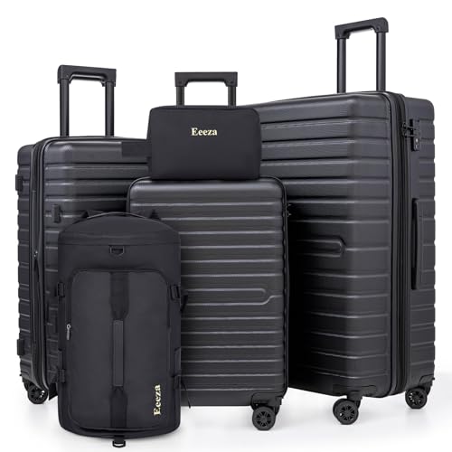 Expandable Luggage Sets 21″/25″/30″ 5 Piece Luggage Set,Suitcase Sets with ABS Hard Shell Lightweight TSA Lock and Detachable Double Spinner Wheels(Black,BP/TB)