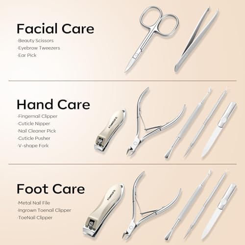 【Commute Essentials】 Our Stainless Steel Nail filing Kit with a brown gorgeous leather case makes it a fashionable and popular gift for your relatives, friends, parents, and the husband. Lightweight and portable Commute accessories can offer exceptional foot, hand, and facial grooming tools. The best gifts for festivals, such as Christmas, Thanksgiving Day, Fathers’ Day and so forth
