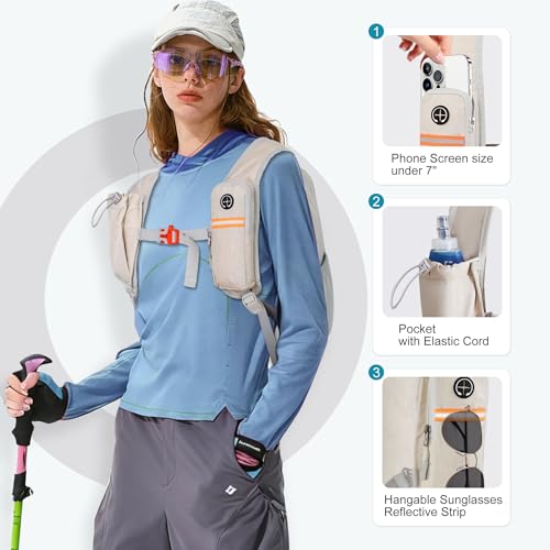 Quick-Get admission to Shoulder Pockets: Stay organized on the go! The ergonomic shoulder straps feature a zippered pocket (fits phones up to 7”) and a stretchy cord pouch for keys, lip balm, or transit cards. No more awkwardly putting off your outside backpack mid-hike—grab hiking essentials instantly. Designed for active lifestyles, these pockets keep valuables protected yet within reach throughout biking, skiing, or city adventures.