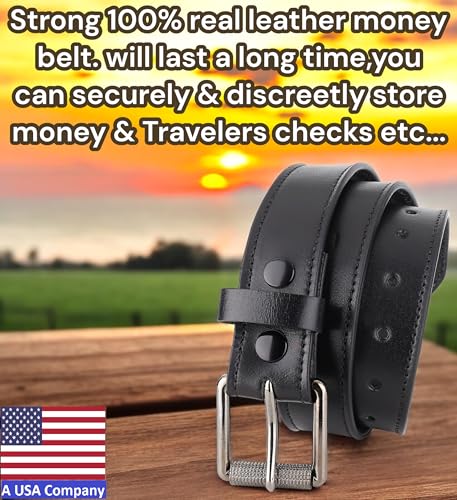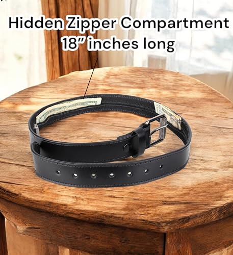 F&L CLASSIC Men’s Money Full Grain leather Belt, Hidden zipper Pocket, USA